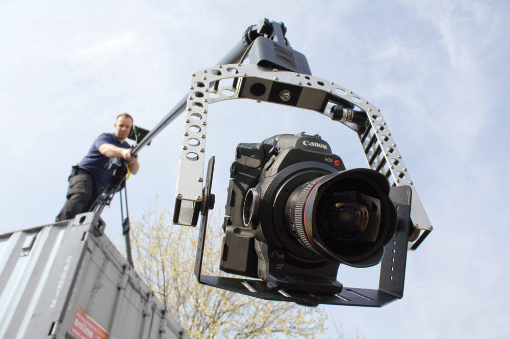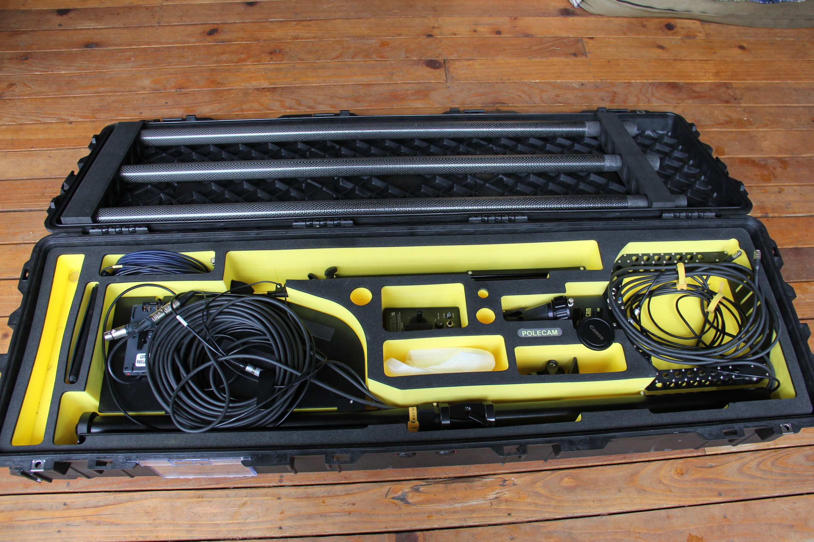 Azon kívül hogy egy angol cég, a Polecam tulajdonképp egy nagyon könnyű krán, aminek a végén egy motorizált mozgatható fej van, erre kerül a kamera. A fej mozgását (tilt és pan) egy joystick-kal lehet irányítani és a képet egy monitoron követni. Természetesen van egy csomó hasonló eszköz a piacon, de a nagy különbség a súlyban van, ugyanis ha terepen használja az ember, akkor nagyon sokat számít a hordozhatóság. Márpedig a Polecam-et az operatőr akár egy speciális mellényre is felerősítheti, és úgy forgathat vele, ami pl. egy hajón delfineket követve kimondottan jól jön.