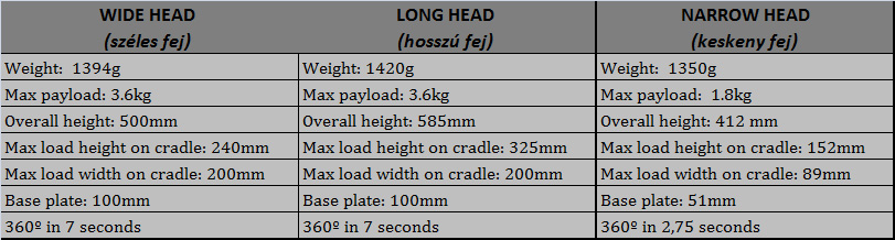 A Wide Head (széles fej) kimondottan a DSLR-rel forgató operatőrök számára készült, így azt hiszem ez igazi piaci telitalálat. Maximum 3,6 kg-ig terhelhető.
